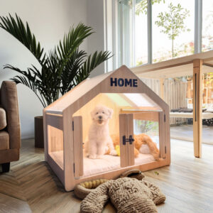 Modern Indoor Pet Cage Detachable Balcony Solid Wood Canvas Design Animal Print for Living Room for Cat Dog House Furniture Oem