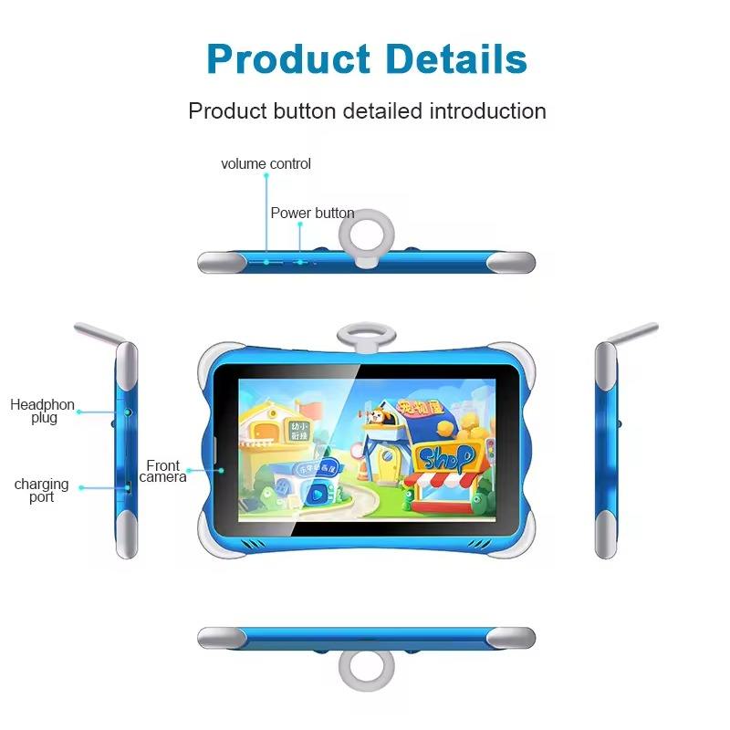 This 7-inch kids tablet features a shockproof design, perfect for educational use with Wi-Fi and 3G connectivity. Equipped with Android 4.4 OS, a Quad-Core processor, and 1GB RAM, it offers smooth performance. The HD 1024×600 capacitive touch screen ensures vibrant visuals. Certified by CE, it guarantees compliance with EU safety standards, ensuring market access for buyers.