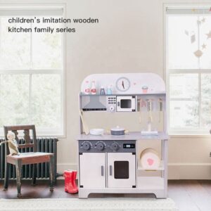 Pretend Play Toy Wooden Kitchen Sets Toys for Children Large Simulation Education Kids Customized Logo Wood Gray Unisex 300