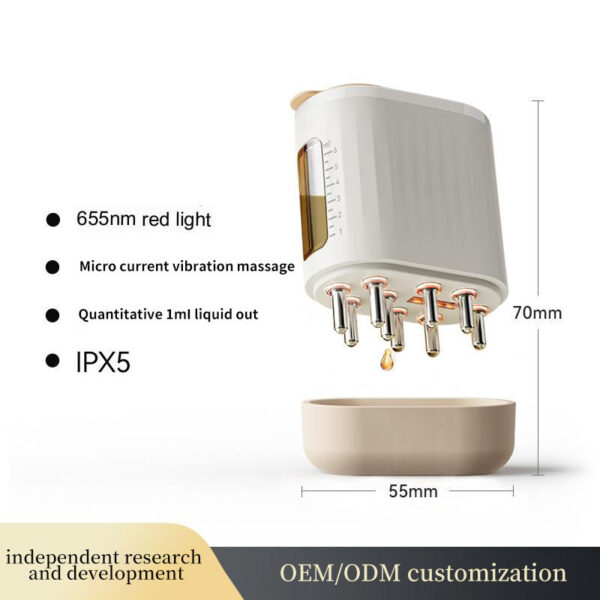 Featuring an electric, battery-powered system, it gently massages the scalp while applying products, enhancing absorption and promoting a soothing experience. Its waterproof build ensures safe and convenient use at home, while the compact size (55 × 30 × 70 mm) makes it easy to handle and store.