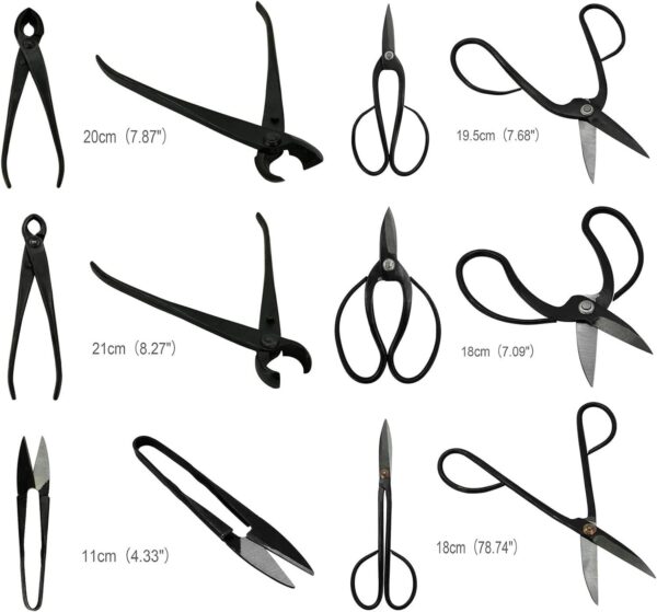 This Bonsai Scissors Tool Set is crafted from high-quality stainless steel and carbon steel, ensuring durability and long-lasting performance. It comes with a 3-year warranty and is stored in a convenient nylon zipped case, making it ideal for gardening enthusiasts. The set supports OEM customization and is designed for both functionality and portability.