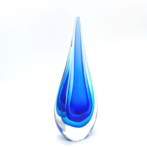 Featuring a graceful angel-inspired water drop shape in captivating shades of dark and light blue, the sculpture radiates sophistication and serenity. Each piece is handmade, making it a unique work of art that adds depth and beauty to any interior space.