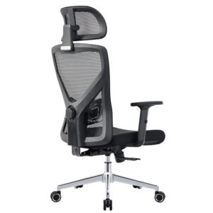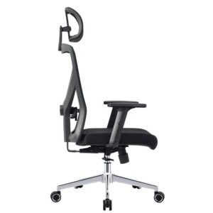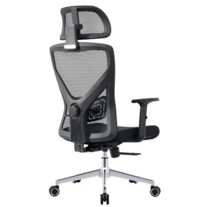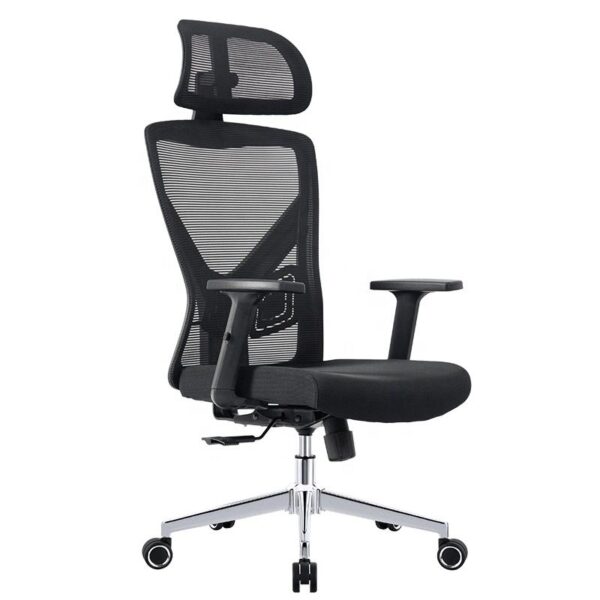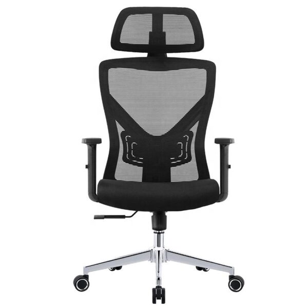 This High Back Office Chair features a breathable mesh backrest with 3D lumbar support, 2D adjustable armrests, and a multi-function mechanism with 90° to 135° recline. Equipped with a BIFMA-certified Class-3 gas lift, a 320mm chrome metal base, and 60mm PU nylon castors for durability. CE certification ensures compliance with EU safety standards, adding market access value.