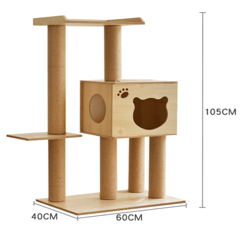 Wholesale Sisal Short Plush Cat Tree House Luxury Toy Wooden House Cat Scratcher Tree Cat Tower