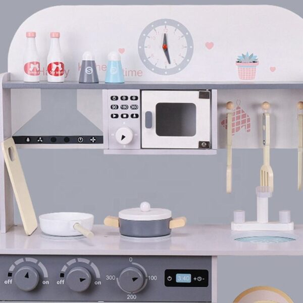 Pretend Play Toy Wooden Kitchen Sets Toys for Children Large Simulation Education Kids Customized Logo Wood Gray Unisex 300