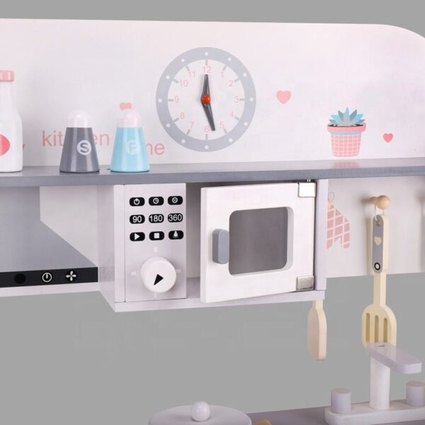 Pretend Play Toy Wooden Kitchen Sets Toys for Children Large Simulation Education Kids Customized Logo Wood Gray Unisex 300 quantity